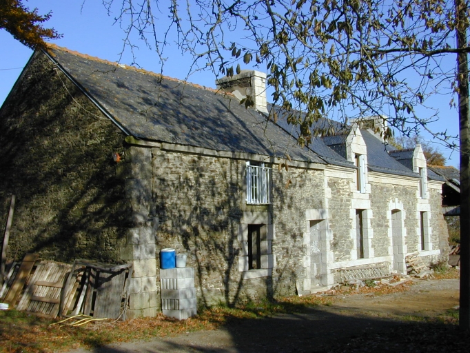 Ferme regroupant en alignement un logis en moellon de schiste avec ouvertures en granite à deux pièces symétriques avec deux lucarnes. Etable en alignement.