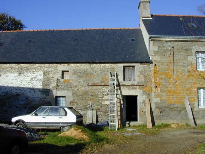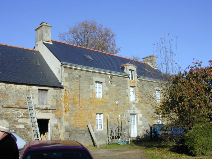 Le logis est construit en pierre de taille de schiste avec base en grand appareil de schiste et ouvertures en granite. Il est de type ternaire avec étage surmonté d'un comble à surcroît éclairé d'une lucarne en pierre de taille ; niche à vierge au dessus de la porte d'entrée. L'appentis contemporain sur la façade postérieure est à usage de cellier ; une porte est ouverte en pignon est. Etable en alignement en moellon de schiste à comble à surcroît. Grange à ouverture à porte charretière en plein cintre en pignon. Logement secondaire et fournil isolés en rez-de-chaussée construits en moellon de schiste à ouvertures en granite, couverts en ardoise. Premier puits à proximité du cellier- appentis en moellon de schiste à margelle monolithe. Second puits en pierre de taille de granite à superstructure en fer forgé.