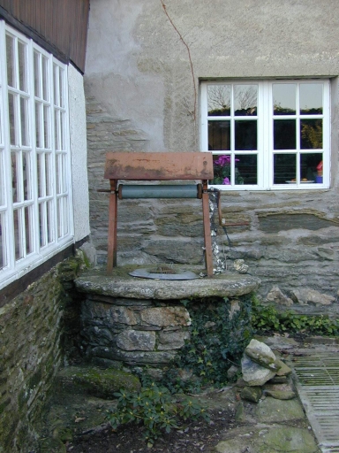 Logis de type ternaire sur cave, variante à travée incomplète, construit en moellon de schiste enduit avec ouvertures en granite et toit à pignon découvert. Puits en moellons de schiste et de granite disposés en lits. Four à pain en pierre de taille de granite.