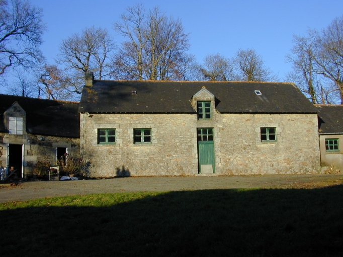 Logis de type ternaire construit en moellon enduit avec ouvertures en granite. Etable avec laiterie en alignement en moellon de schiste.