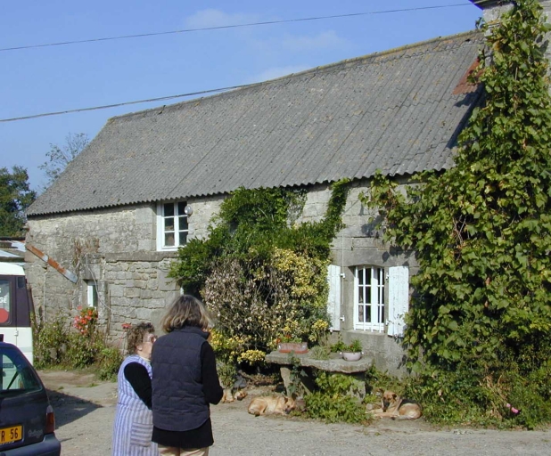 La première ferme construite en pierre de taille (logis) et moellon (étable) de granite, appartient au type dit logis-étable à porte unique. Second logis en alignement à l'est en pierre de taille de granite (façade et pignon), à étage carré, à une pièce par niveau ; l'étage est aujourd'hui desservi par un escalier en bois droit situé dans l'appentis postérieur en pierre de taille : sur le plan cadastral ancien, une tour d'escalier postérieur dans le premier logis semblait assurer une double distribution. Les rampants du toit à pignon découvert portent une urne voilée. La souche de cheminée est sculptée d'une fleur. La toiture en ardoise est à lignolet. Puits circulaire en pierre de taille de granite à montants et traverse monolithes à boules disparu. Cellier charretterie en pierre de taille.