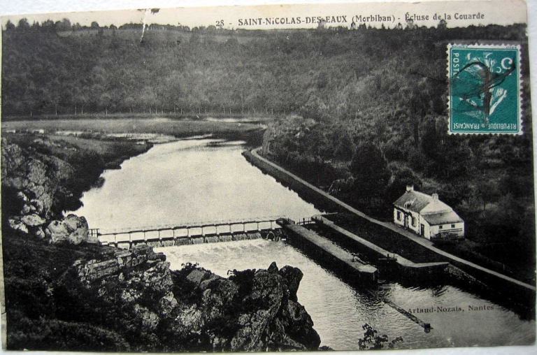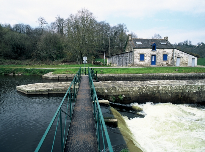 Maison éclusière probablement reconstruite vers 1860 lors du relèvement du niveau du Blavet ; l'écluse figure sur le plan cadastral de 1829.