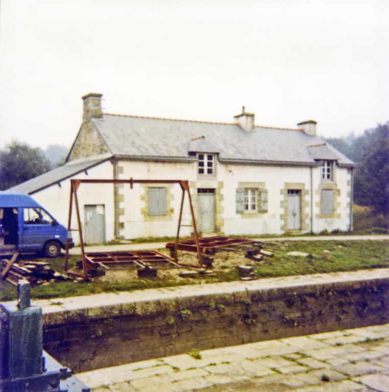 L'écluse est établie sur le site du Moulin Neuf, qui dépendait de la seigneurie de Kergaro. Le moulin, conservé lors de la canalisation du Blavet, (il figure sur le plan de 1829) ne survécut pas au relèvement à 1, 60m. du niveau de la rivière. La maison éclusière est probablement reconstruite vers 1860 lors du relèvement du niveau. En 1965, la centrale hydro électrique Ernest Lemoine fut construite sur le barrage de l'écluse.