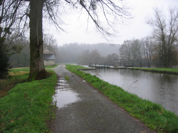 L'écluse en pierre de taille est établie sur un bras de dérivation, le barrage étant à l'endroit du moulin disparu. La maison est enduite, à deux pièces en rez-de-chaussée, et comble à surcroît. L'écurie est en alignement sous le même toit.