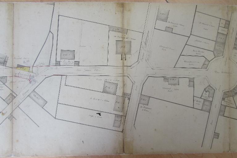A. M. Vannes 1O216 voirie alignement travaux plan des alignements de la rue des Rosiers et de son prolongement vers Trussac, 1885.