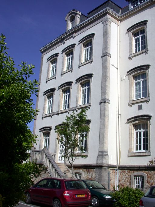 En 1880, le préfet décide de l´achat d´une prairie sur la route d´Auray. Les plans sont signés de l´architecte du département Maigné en 1881, la construction achevée en 1883. En fort retrait de la route, le bâtiment principal compose une masse impressionnante : le corps central limité par deux pavillons se déploie sur treize travées à deux étages sur étage de soubassement. Pour éviter une certaine monotonie, les baies médianes du corps central sont jumelées sous un larmier, le tympan réservé à un décor de palmes et de rinceaux en relief ou en creux. La travée centrale double qui abrite la cage d´escalier se signale par l´utilisation de la pierre de taille, du calcaire de Saint-Savinien. Ateliers et cuisines occupent le rez-de-jardin, l´administration et le réfectoire le rez-de-chaussée, des classes et la bibliothèque, le premier étage et deux grands dortoirs le second.