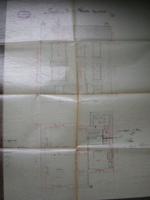 Typologiesen retrait de rue ; maison à plan à avancée ; double en profondeur ; cheminée sur mur gouttereau