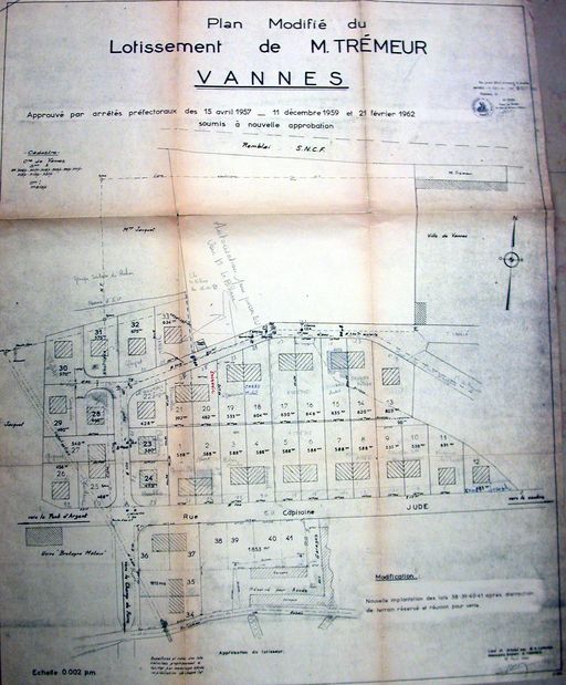Le lotissement est approuvé une première fois le 15 avril 1957 malgré l'avis défavorable des services de la ville du 13 février 1956, le terrain étant jugé inondable. Le lotissement comprend au départ les parcelles du lotissement réalisé en 1961 par la société coopérative d'HLM le Foyer vannetais. Le lotissement Tremeur a été approuvé à plusieurs reprises à la suite des difficultées que rencontre le promoteur dans l'écoulement des eaux et l'évacuation du ruisseau de Rohan. La création du lotissement entraîne l'ouverture de voies nouvelles et une imputation cadastrale ainsi qu'un échange pour la rue Capitaine Jude : sur la parcelle 813 section I, 221m² sont cédés par la ville et sur la parcelle 908 section A, 828m² sont cédés par monsieur Tremeur.