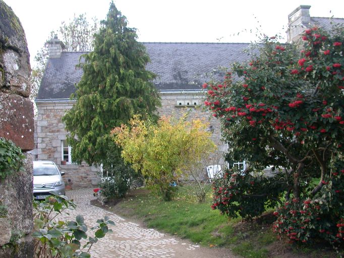 Ferme dont l'implantation oblique par rapport à l'axe de la rue, obéit à l'ancien parcellaire. Elle est constituée d'un logis désenduit simple en profondeur de type ternaire (à 1 étage carré et trois travées), et d'une étable en léger retrait également désenduite, à comble à surcroît. Les ouvertures sont en granite ; un bandeau en appareil polygonal souligne le niveau du toit du logis. Le puits circulaire est en pierre de taille de granite.