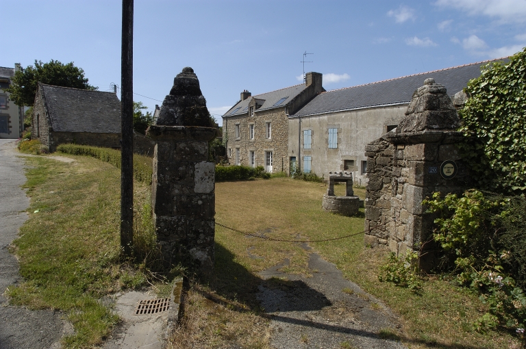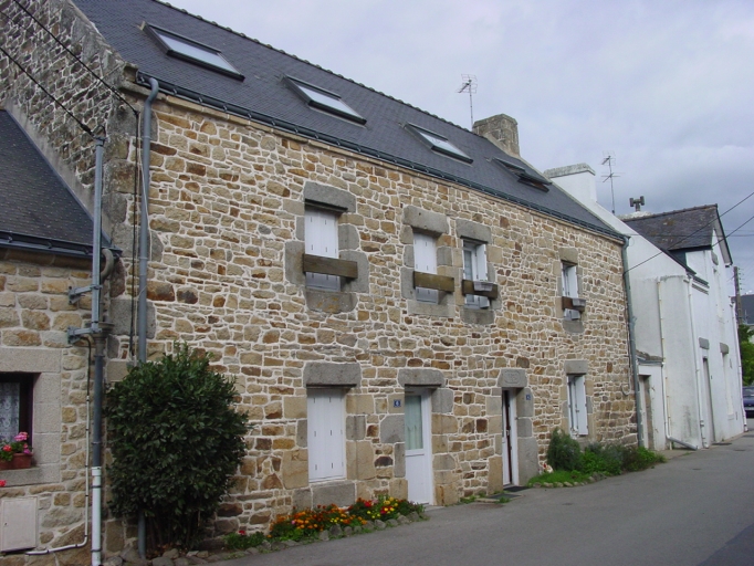 Le bourg actuel de Belz adopte la forme d'un village rue le long de la départementale rebaptisée en agglomération rue du Général De Gaulle et rue Laennec. Toutefois la trame du bourg ancien et notamment l'empreinte des anciens communs libres de toute construction, est bien perceptible à l'ouest et au sud de l'église ainsi que sur la petite place Mané-er-Bleun (fig. 7). Aujourd´hui l´urbanisation gagne d´anciens terrains agricoles au nord et au sud du bourg, joignant des écarts tels que Le Coedic et le Presbytère à l´est, les anciens lavoirs au nord (fig. 9) ou encore Mané-er-Lan à l´ouest. 55 maisons et 8 fermes sont repérées dans l'emprise du bourg dont 4 maisons sélectionnées. Un ancien manoir n´a pu être inventorié faute d´autorisation (AE 393). LES FERMES C'est dans la partie nord du bourg que subsistent 6 des 8 anciennes fermes repérées, les deux autres étant situées au sud de la départementale voire assez éloignée de celle-ci à l'origine. Au sud la ferme n°1 (fig. 10-11) est repérée route de Kerdonnerc´h (AE 121). Elle se présente sous la forme d´un logis à étage en partie habitable et a un double grenier. La ferme n°2 au sud de la mairie (fig. 12), dite aussi ferme Guillouard, ne conserve que son logis à étage de la fin du 19e siècle (AE 118) dont seule la façade sud de type ternaire est en place. Au nord de la départementale, la ferme n°3 (fig. 13) la plus ancienne (AE 530) ouvre sur la place Mané-er-Bleun. Elle est composée d´un logis étable à deux portes sous comble à surcroît doté d´une porte haute à accolade accessible grâce à un escalier extérieur (remonté). La pente de toit et la hauteur du comble sont remaniés aux 19e puis au 20e siècle. Deux autres corps de bâtiment aspectés au sud se trouvent en alignement a l´ouest, ainsi qu´une dépendance isolée au sud (fig. 14). Ils ne sont pas repérés car très dénaturés. La ferme n°4 actuellement en ruine (fig. 15), est repérée sur cette même place côté est (AE 44). Elle se compose du nord au sud de trois bâtiments alignés en barre : une grange-charretterie, un logis à pièce unique (ou techtal), un logis sous comble à surcroît ouvert d´une porte haute, avec étable en appentis sur la façade antérieure. La ferme n°5 (fig. 16) repérée place R. Cassin (AE 39), présente une façade sud à 4 travées dont les deux du centre ont des portes transformées en fenêtres, correspondant aux portes du logis et de l´étable. Une annexe existe en retour contre la façade postérieure. Autour de l´église et de son ancien placître, la ferme n°6 (AE 365, 367) présente un logis à étage de type ternaire qui s´apparente à une simple maison d´habitation ouvrant sur la place (fig. 27). La cour et les dépendances sont à l´arrière. La ferme n°7, repérée au nord de l´église (AE 93, 490-491) est la plus remarquable dans son enclos cerné de murs (fig. 17-18). Peut-être la métairie noble mentionnée dans les archives. La maison principale présente des éléments d'architecture du 16e siècle, tels des linteaux sculptés en remploi au sud et une fenêtre à traverse au nord, est très remaniée. Le logis étable du 19e siècle en alignement à l'est conserve une cheminée du 17e siècle. Enfin la ferme n°8 présente une façade sur la rue des Tennis (AE 530). C´est aussi un logis à étage à fonction de chambre et de grenier. Un appentis postérieur servait d´étable et de dépendances ouvertes sur la cour. Une remarquable grange-charreterie (fig.21) subsiste contre le mur sud de l´enclos (AE 546). LES MAISONS 55 maisons sont repérées dans le bourg dont 4 font l´objet d´une sélection. Dans ce panel la majorité, c´est à dire 37 maisons, est de plan massé à étage (AE 28, 33-34, 45, 52, 60, 61, 63, 64, 88, 90, 91, 98, 101, 109, 137, 142, 143, 144, 145, 148, 151, 186, 188, 210, 237, 238, 259, 321, 394, 424, 425, 431, 438, 439, 446-447, 547, 552), 14 sont à deux pièces sous comble à surcroît (AE 12, 18, 19, 55, 85, 86-87, 157, 179, 202, 203, 289, 323, 355, 423), 2 sont à pièce unique (AE 50, 58), 1 est de plan en L type années 1930 (AE 480), et 1 est de plan en U sans étage (AE 155) considéré comme unicum avec ses deux pavillons en retour sur la façade postérieure. Les maisons à étage bordent la voie principale, rues De Gaulle et Laennec, mais sont aussi regroupées aux abords de la place de l´église et de celle de Mané-er-Bleun. Bon nombre d´entre-elles présentent une façade de type ternaire. Cependant on observe des façades à 2 voire une seule travée pour les plus simples (fig. 23). Dans la rue principale se trouvent les commerces avec boutiques aménagées dans tout ou partie du rez-de-chaussée des immeubles et aussi des ateliers dans l´arrière cours (fig. 23). Cinq maisons à étage sont couvertes d´un toit à croupe, certaines adoptent dans ce cas un plan double en profondeur, à l´image du n° 1 place Mané-er-Bleun supposé être l´ancienne gendarmerie (fig. 32-33). Les maisons sans étage, à 2 pièces symétriques ou non sont situées principalement rue Nachtel, rue de Mané-er-Lan et rue de Kerhuen au nord. La tradition orale rapporte que les maisons de la rue Nachtel sont des logis d´ouvriers venus à l´époque du grand chantier d´aménagement de la nouvelle départementale et de la construction du pont Lorois (fig. 37-38). Celles du début du 20e siècle sont assimilables aux maisons de pêcheurs que l´on rencontre dans les autres hameaux et écarts côtiers de la commune (fig. 36).