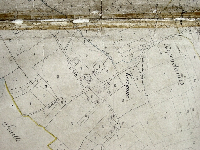 Kericune est constitué d'une ferme au sud et sur la route de Larmor, de trois tenues dont une en ruine (F 252) au nord de cette même route et d'une ferme et de maisons de pêcheurs, au Norquer au sud. Les fermes les plus importantes ne sont pas repérées (fig. 8 et 9). Deux tenues et 3 maisons de pêcheurs sont repérées. Les deux tenues ou petites fermes repérées sont des logis à pièce unique sous comble à surcroît, avec dépendances en appentis ou en alignement (fig. 4 et 5). La ferme n°1 (F 257) conserve une porte en anse de panier ornée d'un tore. Son haut surcroît et la porte haute résultent de transformations du 19e siècle. Au Norquer les trois maisons de pêcheur repérées reprennent un alignement ancien orienté au sud-est (F 518, 520-521). Celle au nord est, avec sa petite lucarne à fronton triangulaire peut être datée vers 1900 ; les deux suivantes sont des années 1920 (fig. 6). Dans un enclos situé au sud de cet alignement (F 517), se trouve une soue à porc, un puits, un lavoir domestique et un potager avec une treille (fig. 7).