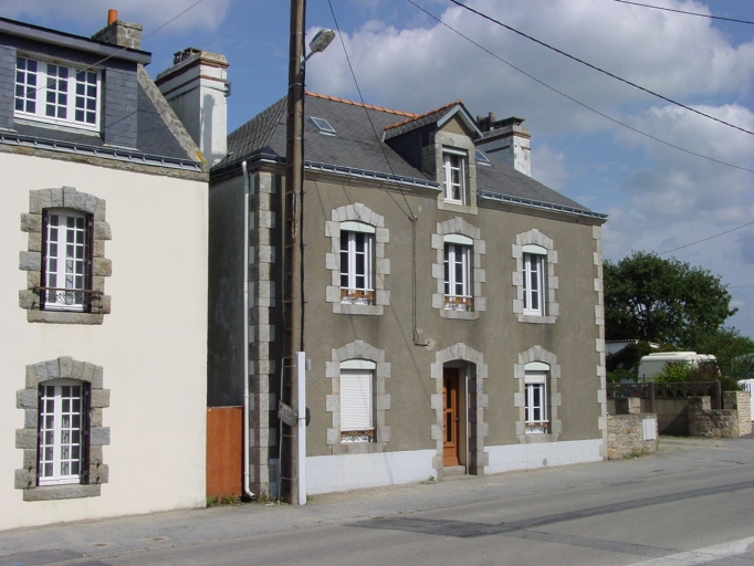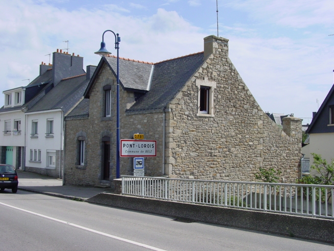 L'écart de Pont-Lorois s'étend d'une part à l'est du pont, autour du carrefour des deux routes départementales n° 9 et 781, et d'autre part de façon linéaire le long de chacune de ces deux voies. Route de Carnac, le lieu-dit Kergroix constitue la limite sud-est de l'écart. Route de Belz, l'écart englobe le lieu-dit Mézecu et sa limite nord-est se trouve au niveau du carrefour avec la rue de Poulbreton. Le pont Lorois, étudié, fait l'objet d'un dossier à part entière. Au nord du pont une cale de mise à l'eau est repérée (fig. 20). 31 maisons sont repérées à Pont-Lorois. Se sont pour l'essentiel, soit 17 d'entre elles, des maisons de pêcheurs à une ou deux pièces sous comble à surcroît (AH 549, 108, 169, 164 à 167, 692, 693, 83, 1487, et AB 117, 118, 116, 492, 110, 108). Leur implantation est rarement isolée. Le plus souvent elles sont regroupées en barres, construites à l'alignement ou perpendiculairement à la voie selon l'orientation des parcelles (fig.4 et 5). Les plus anciennes sont aussi les plus simples du point de vue des volumes et surtout de la modénature. Les n° 74-76 route de Pont-Lorois sont deux maisons à pièce unique sous comble à surcroît (AB 117 et 118). Chacune conserve une soue à porc en retour contre la façade (fig.6). Des maisons à étage plus cossues indiquent la présence de quelques patrons de pêche ou de commerçants, dans ce dernier cas il existe une boutique en rez-de-chaussée (fig.13 et 11). 11 sont repérées (AH 32, 91, 103, 178, 1527, 516, 74, 674, 77, 78, et AB 230, 231, 120). Elles sont principalement réunies aux abords du carrefour des deux routes départementales, à l'est du pont, mais aussi et de préférence le long de la route de Kergroix vers Carnac, actuelle D 781. Une maison à étage de la fin du 19e siècle se trouve au n° 81 route de Pont-Lorois (AH 78). Sa façade nord, non ordonnancées, présente des ouvertures à feuillures (fig.16).