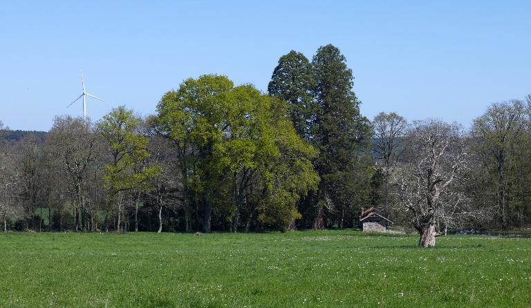 Une série de bâtiments accompagnent le logis : la chapelle de style néo-roman, dont les plans sont signés de Dupuis en 1877, les communs qui occupent la place de l’ancien logis, et surtout le lavoir dû à Langanry, remarquable construction de style pittoresque avec buanderie et séchoir bordant la pièce d’eau.