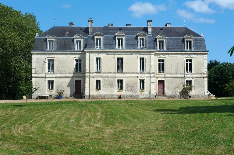 La conception du château au XIXe siècle diffère de celle des siècles précédents ; ainsi le décrit-on dans « la Vie à la campagne » : « un château solidement campé sur sa colline (…) avoisiné d’arbres séculaires… ». L’ancien logis est donc détruit et le nouveau déplacé au sommet du coteau d‘où il domine le parc, mais aussi la vallée de la Claie, afin de voir et d’être vu. Traitée dans un style classique, la façade principale se développe sur sept travées, l’accent étant mis sur les travées extrêmes, en saillie, et surtout sur la travée centrale soulignée par un fronton, une lucarne plus développée, et le perron d’accès à la porte d’entrée ; participant à la mise en valeur de l’entrée, ce perron s’explique aussi par l’existence du sous-sol à demi-enterré dans lequel sont logées depuis le 18e siècle dans les châteaux, les pièces de service : cuisines, fruitier, salle-à-manger des domestiques. Sur la façade postérieure, ce sont les trois travées centrales qui forment avant-corps pour accueillir le grand escalier.