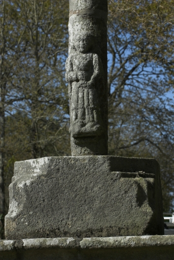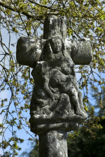 Fut orné d'une silhouette de prêtre portant un calice. Le croisillon est orné d'un Christ en croix sur la face ouest, d'une Vierge de pitié au revers.