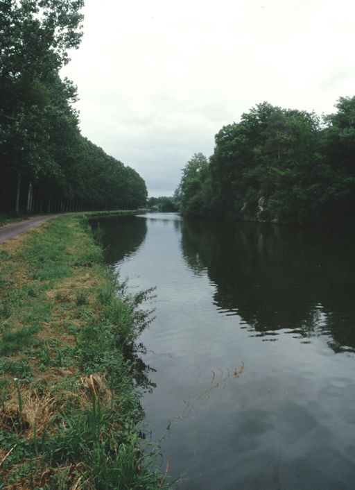 Écluse à sas ; pierre de taille de granite ; bittes d'amarrage. Déversoir & vanne au niveau de la porte amont. Déversoir rectiligne. Vanne contre la rive opposée à l'écluse ; culée et îlot : pierre de taille de granite. État actuel : passerelle et vannes métalliques. Réseau de rigoles à proximité ; en amont le canal semble plus haut que les prairies environnantes.