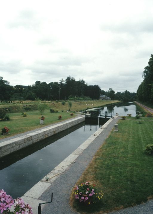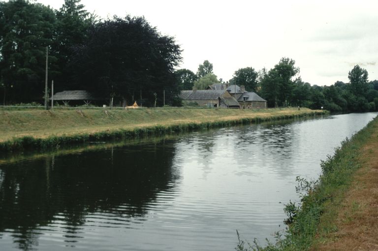 Écluse à sas ; pierre de taille de granite ; bittes d'amarrage. Déversoir rectiligne. Pertuis à vanne ; culée et îlot : pierre de taille de granite. État actuel : passerelle et vannes métalliques. Rigole de ruissellement à l'arrière de la maison. Borne kilométrique 200 (à 300 m en aval de l'écluse de Josselin) : étonnamment placée au km 157 approximativement. Bac (privé) à 350 m en amont.