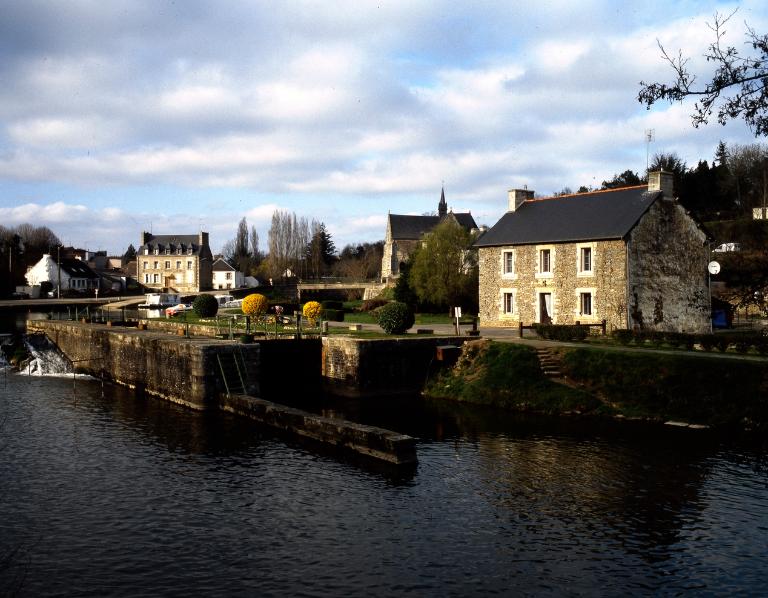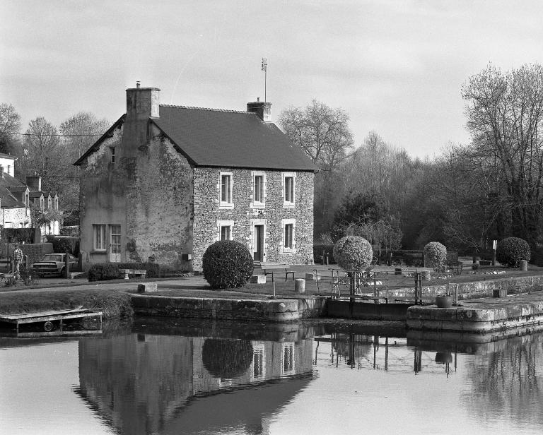 Écluse à sas ; petit appareil de schiste, parements supérieurs & chaînes d'angle : pierre de taille de granite ; pare-gravier : pierre de taille de granite ; bittes d'amarrage. Déversoir & vanne au niveau de la porte amont. Déversoir rectiligne. Vanne contre la rive opposée à l'écluse ; culée et îlot : petit appareil de schiste, parements supérieurs & chaînes d'angle : pierre de taille de granite. État actuel : vannes et passerelle métalliques. Borne kilométrique en aval, avec l'inscription : NAPOLEONVILLE.