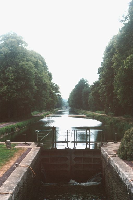 Bel alignement de tilleuls en amont ; alternance hêtres et acacias sur rive droite. Sur le bief 40-41, au km 165.806, ancienne carrière de Pommeleuc.