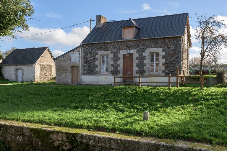 Écluse à sas ; grand appareil de granite ; deux marches de schiste le long du bajoyer de rive amont ; bittes d'amarrage. État actuel : portes métalliques, celle d'amont avec passerelle en bois. Déversoirs rectilignes sur la rivière : en amont et sous le pont sur écluse. En aval : Deux bornes kilométriques.