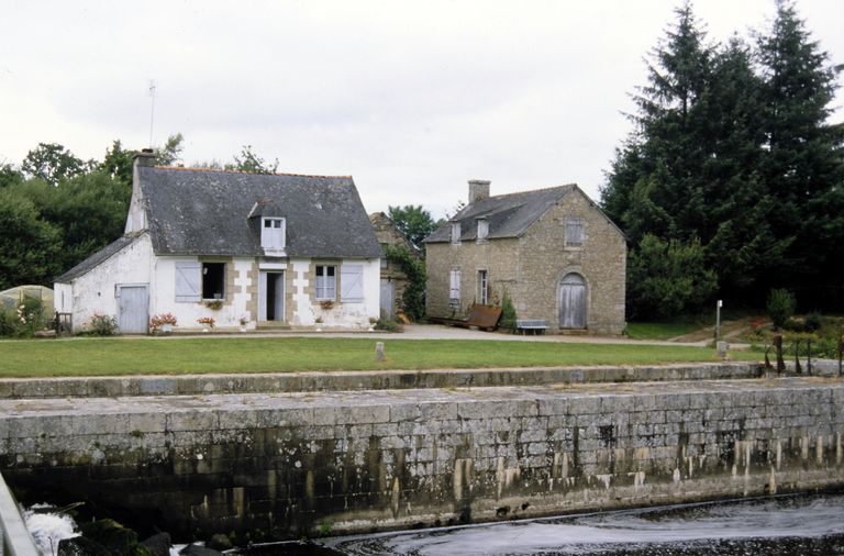Site d'écluse remarquable. Ensemble intéressant rassemblant une série de bâtiments : maisons, magasins, peu remaniés et en bon état de conservation sur la section à l'état d'abandon entre Pontivy et Guerlédan.