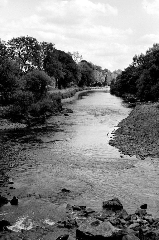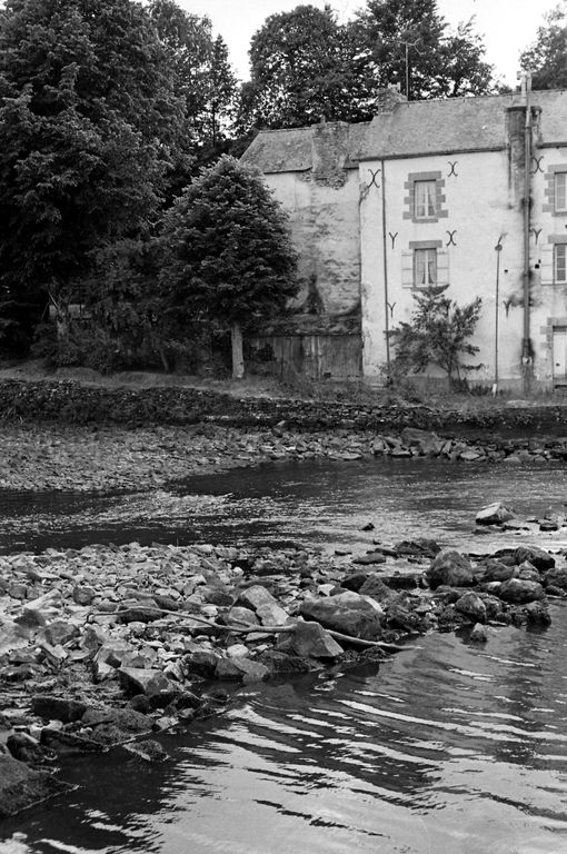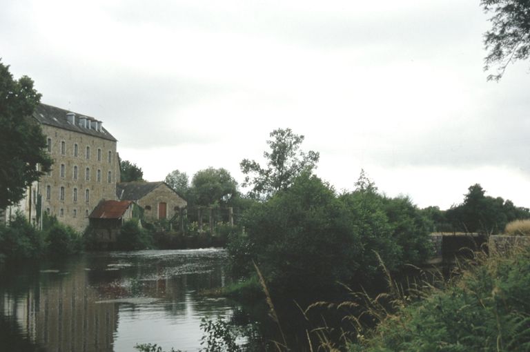 Site remarquable. Minoterie importante avec plusieurs bâtiments annexes et des logements le long de la route. Petit pont au-dessus de l'alimentation de la minoterie : une arche, appareil de granite (contre la rive gauche).