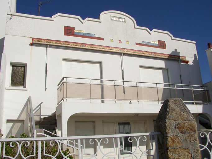 - RECO Le front balnéaire de la Nourriguel s´est développé à partir de l´Entre-deux-guerres et s´est fortement urbanisé dans les années 1950-1960. L´architecture particulière de la villa Primerose, alliée à un jeu de couleur, est originale à Larmor-Plage. Sur le POS de la commune de Larmor-Plage, elle est reconnue comme immeuble remarquable. Située en dehors de tout périmètre de protection, elle est cependant susceptible de subir des transformations (ajouts sur la façade notamment). Cette villa participe à l´homogénéité des volumes et des hauteurs de ce front balnéaire qu´il faut veiller à conserver. Dans le cadre du renouvellement de l´intérêt de la population pour ce quartier, il importe de sensibiliser à l´intérêt paysager de cette villa et de faciliter, éventuellement par des conseils ou des aides, un entretien soigné de la façade, respectueux de ses caractéristiques originelles.