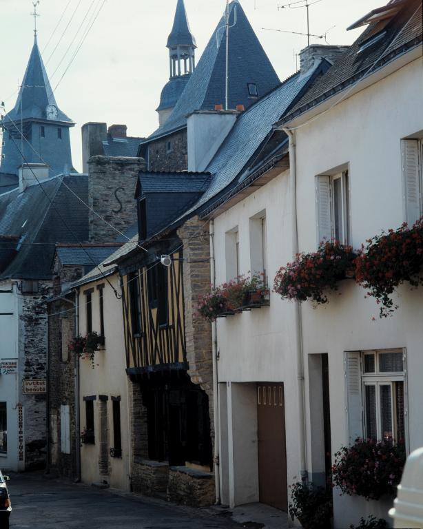 Dans la ville, plusieurs maisons sont dès le XVIe siècle bâties en pierre et présentent une grande variété de matériaux : schiste vert, bleu, pourpre, poudingue, grès et granite en pierre de taille pour les plus belles. Certaines d´entre elles, fruit du regroupement de plusieurs parcelles, attestent la réussite de riches marchands capables de construire de véritables hôtels particuliers aux belles lucarnes en granite de Lizio. Au XVIIIe siècle, la batellerie fluviale, le passage de la route de Rennes à Vannes, les foires et les marchés aident la cité à traverser la crise du textile. Dans plusieurs maisons de la Grande Rue ou de la place du Bouffay, les porches ou avant-soliers sont supprimés et leurs façades rebâties dans le style sévère des ingénieurs : l´arc segmentaire de leurs baies les rend facilement reconnaissables.