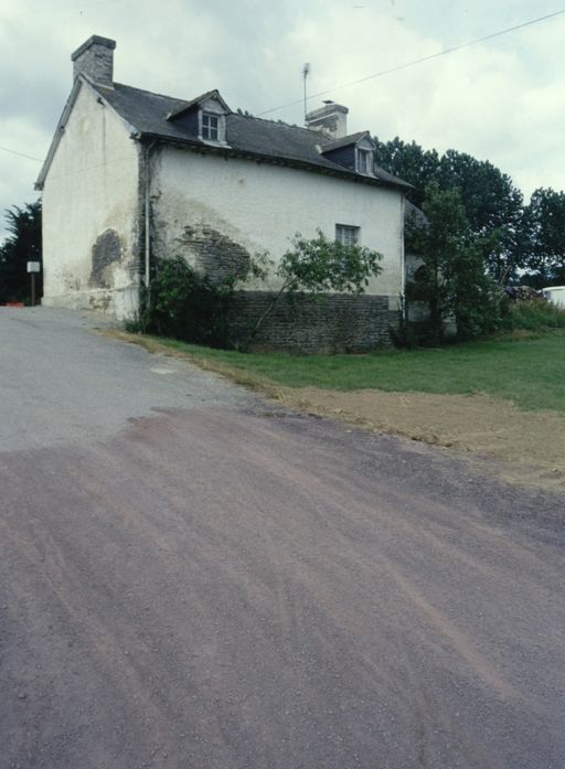 Logis : plan de type ternaire ; niveau de soubassement, rez-de-chaussée surélevé, comble à une lucarne en façade antérieure, deux en façade postérieure ; fenêtres de grandes dimensions ; murs : moellons de schiste enduits ; perron et encadrements des baies harpés : pierre de taille de granite ; deux souches de cheminée. Dépendance sous le logis : étable ou espace de stockage. Dépendance à gauche du logis : toit à longs pans ; encadrements des baies : brique ; deux fenêtres en demi-cercle dans le mur pignon, une fenêtre dans le pignon. État actuel : dépendance rehaussée en parpaings en ciment.