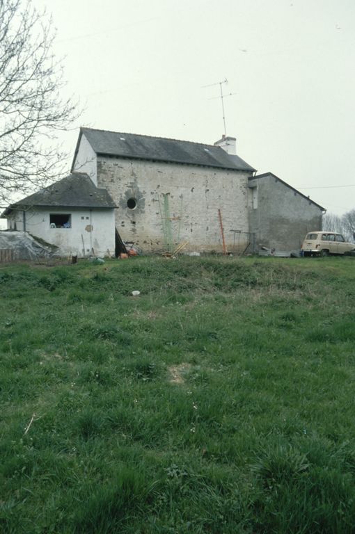Logis : plan de type ternaire ; rez-de-chaussée, étage carré ; fenêtres de grandes dimensions ; murs : moellons de schiste ; soubassement, encadrements des baies & chaînes d'angle harpés : pierre de taille de granite ; une souche de cheminée. Deux dépendances de part et d'autre du logis et le débordant en profondeur à l'arrière ; à droite : toit à longs pans & croupe ; encadrements des baies : brique ; deux fenêtres en demi-cercle dans le mur de croupe ; à gauche : toit en appentis ; encadrements des baies : brique. État actuel : ouvertures de baies, suppression de l'enduit.
