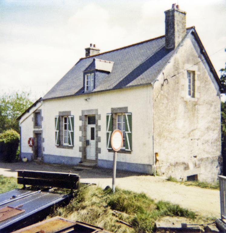 Logis : plan de type ternaire ; niveau de soubassement, rez-de-chaussée surélevé, comble à lucarne en façade et fenêtre dans chaque pignon ; fenêtres de grandes dimensions ; murs : moellons de schiste enduits ; perron et encadrements des baies harpés : pierre de taille de granite ; une souche de cheminées décalée sur chaque versant du toit. Dépendance sous le logis (accès par le mur pignon droit) : étable ou espace de stockage. Dépendance à gauche du logis ; toit en appentis ; comble à surcroît ; murs : moellons de granite. État actuel : maison abandonnée.