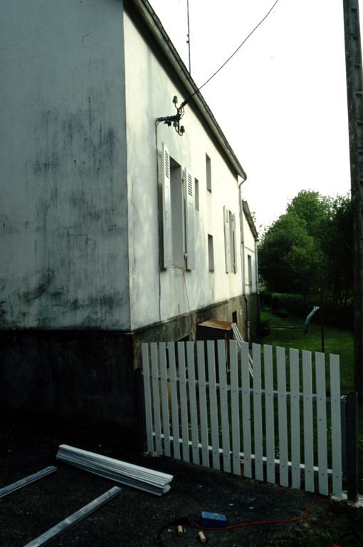 Logis : plan de type ternaire ; niveau de soubassement, rez-de-chaussée surélevé, comble à lucarne & fenêtre dans le pignon gauche ; fenêtres de grandes dimensions ; murs : moellons enduits ; perron et encadrements des baies harpés : pierre de taille de granite ; deux souches de cheminée décalées sur le versant postérieur du toit. Dépendance sous le logis (accès par le mur pignon droit) : étable ou espace de stockage ; deux soupiraux sur chaque façade. État actuel : ajout d'une dépendance à gauche.