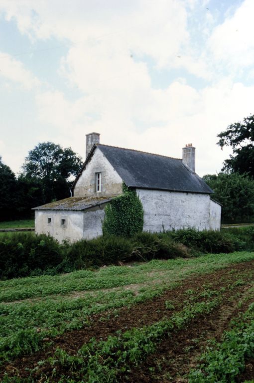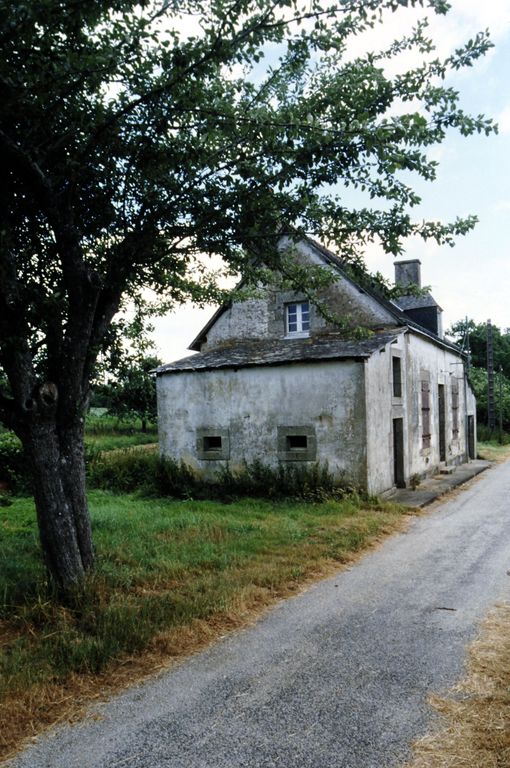 Logis : plan de type ternaire en rez-de-chaussée ; comble à lucarne et fenêtre dans chaque pignon ; fenêtres de grandes dimensions ; murs : moellons de schiste enduits ; perron et encadrements des baies & chaînes d'angle harpés : pierre de taille de granite ; une souche de cheminée décalée sur chaque versant du toit. Deux dépendances de part et d'autre du logis ; toit en appentis ; murs : moellons enduits ; encadrements des baies : pierre de taille de granite ; deux fenêtres horizontales dans le mur gouttereau. État actuel : dépendance de droite transformée en garage ; maison abandonnée.