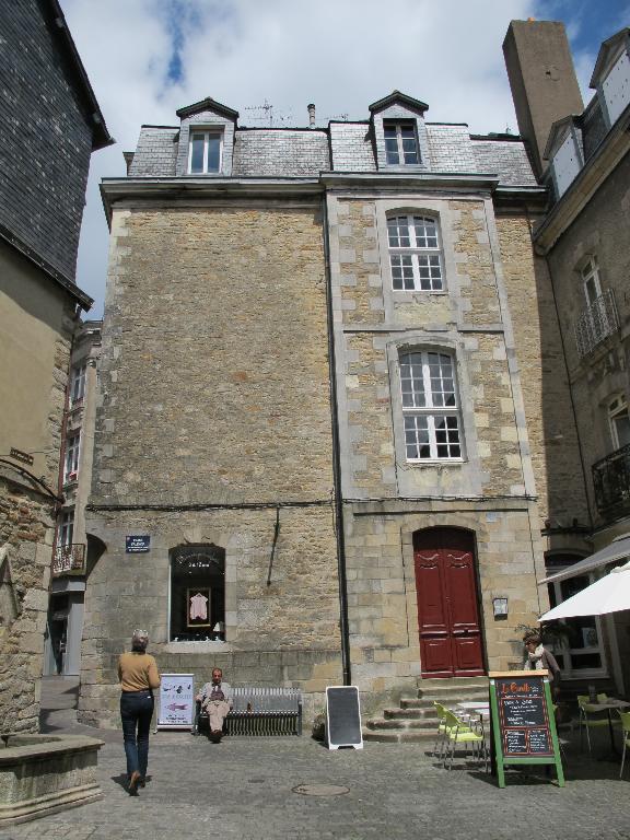 A. D. Morbihan 6E 778 : 17 juin 1749 : Vente d´une maison située rue des Orfèvres passée entre messire Jean-Baptiste Alexis Joseph Chef de nom et d´armes de la Chapelle chevalier seigneur de la villeplot et Kercointe et dame Bonne Pauline d´Espinose son épouse demeurant rue Saint François d´une part et Dlle Jeanne Olive Alba fille mineure authorisée de N.H. Jean Guiter du Defaye docteur en médecine.