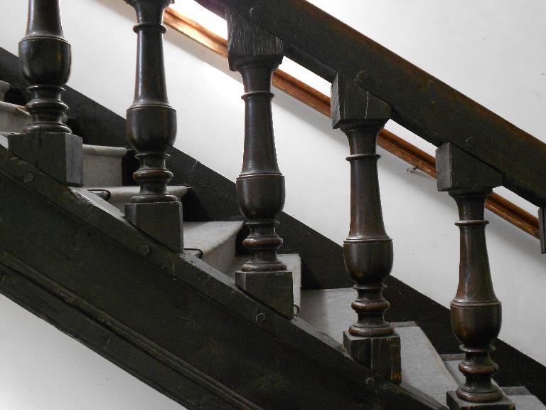 - escalier dans-oeuvre : escalier tournant à retours avec jour en charpente, cage ouverte