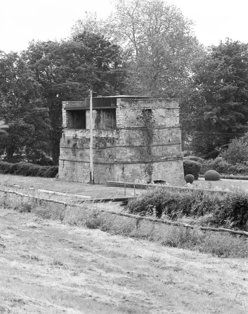 Haut fourneau en pierre de taille et moellon de granite renforcé de fer.