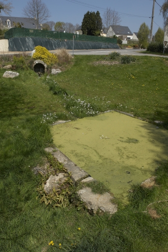 La fontaine, dont la partie arrière est enterrée, est construite en pierre de taille de granite. Elle est accompagnée au dessus d'une stèle et à l'est, d'un polissoir. Cette grosse pierre creuse servait à polir les outils préalablement taillés à l'aide de sable et d'eau. La fontaine largement ouverte en plein cintre est reliée au lavoir de plan rectangulaire par une rigole.