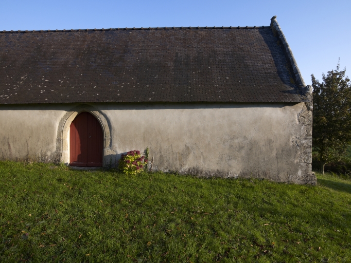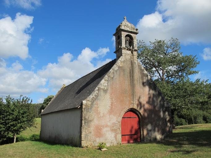 Particulièrement homogène, malgré la reconstruction de son clocher en 1700, la chapelle est aujourd'hui la plus ancienne de Kervignac : la fenêtre axiale du chœur avec ses deux lancettes autrefois trilobées inscrites dans un cadre rectangulaire ne peut être postérieure au début du 15e siècle, de même que la pierre d'assise des rampants est, fortement marquée. La porte ouest est contemporaine, avec l'épaisse moulure de sa voussure, et ce malgré l'absence d'archivolte et de chapiteau soutenant l'arc. La porte sud, très simple, a peut-être été reprise, mais sous l'enduit se voit le départ d'une marque gravée : il serait intéressant de connaître la signification de cette marque. L'absence de fenêtre autre que celle du chevet est caractéristique des petites chapelles du 15e siècle, mais beaucoup d'entre elles (Locadour et Trévidel à Kervignac, Saint-Fiacre à Plouhinec) ont plus tard été dotées de fenêtres au sud éclairant le chœur, parfois à l'occasion de la mise en place d'un retable.