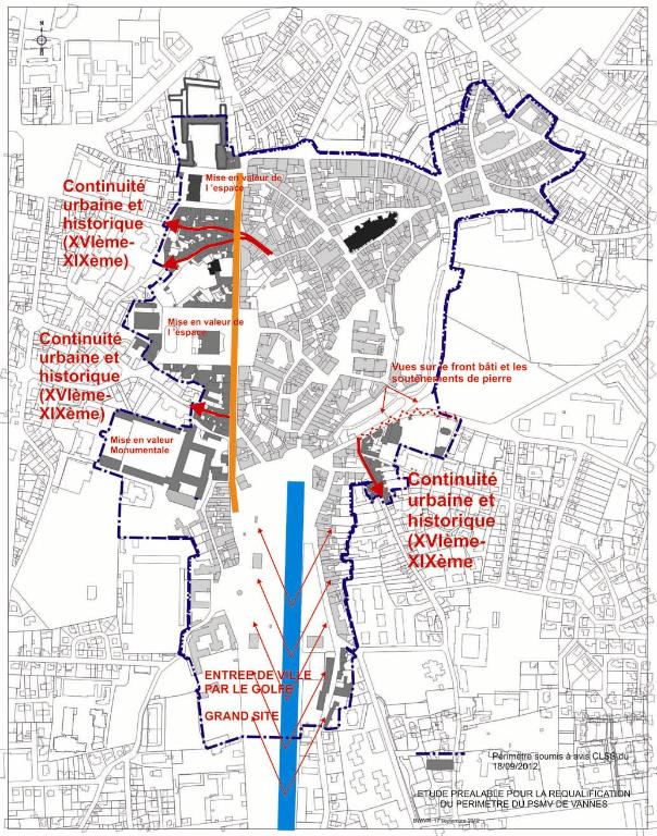 La Ville de Vannes a décidé, en accord avec l’Etat, la révision et l'extension du P.S.M.V. de son secteur sauvegardé devenu trop ancien et obsolète : trop succinct, manquant d’informations ou de connaissances patrimoniales, inadapté aux problématiques actuelles (dynamisme économique, automobile, développement durable, confort). Au coeur d’une agglomération en fort développement et en évolution permanente, Il s’agit de mieux prendre en compte l’intérêt patrimonial de la ville ancienne qui fonde son identité, au fil du temps et des différentes époques historiques de son évolution. La ville ancienne qui reste le cœur urbain dynamique et moteur de l’agglomération, doit être mieux cernée, analysée et connue. Ses caractéristiques morphologiques et architecturales doivent être respectées, tout en permettant le développement et l’adaptation aux besoins nouveaux.