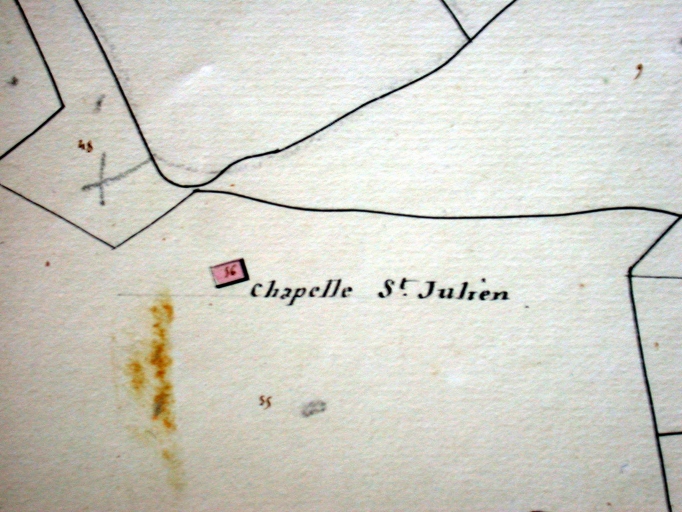 La chapelle Saint-Julien est reconstruite en 1892 (date gravée sur la porte sud), à l'emplacement d'un édifice plus ancien du 17e siècle dont elle remploie certains éléments : corniche extérieure, pignon ouest, rampants est, chaînes d'angles. A l'intérieur de l'édifice, sur le mur du chevet, une inscription signale de nouveau la date de sa reconstruction : "Rebâtie en 1892 par Monsieur Raut, curé doyen, Monsieur Legal, trésorier, Joseph Jan, maître maçon". La chapelle était anciennement enduite. Cette chapelle dépendait peut-être du manoir de Kernaud situé à moins d'un kilomètre au sud.