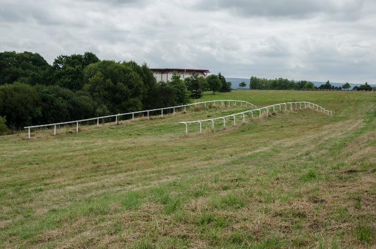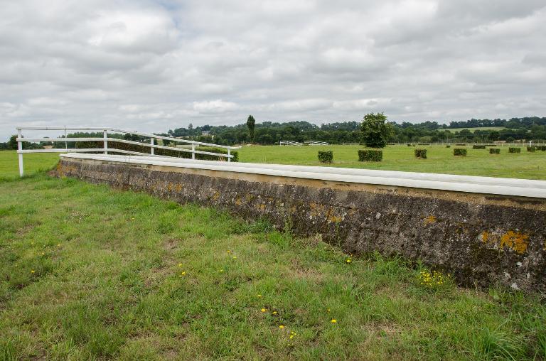 Le pavillon du pesage se situe au sud du site et à l’ouest des pistes. De plan rectangulaire, il est construit en aggloméré de ciment avec un toit à deux versants en ardoise. Il regroupe le