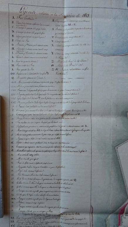 Du reste, en consultant le plan ci-joint, il sera beaucoup facile de se faire une idée juste de cette fortification, qu'en lisant la description la mieux faite et la plus minutieuse, description qui demanderait beaucoup plus de tems pour être lue, qu'il en faut pour avoir une idée précise et complète à l'inspection d'un dessin coté. Les teintes conventionnelles indiquent les parties achevées et celles en projet, les parties en déblais et celles en remblais.