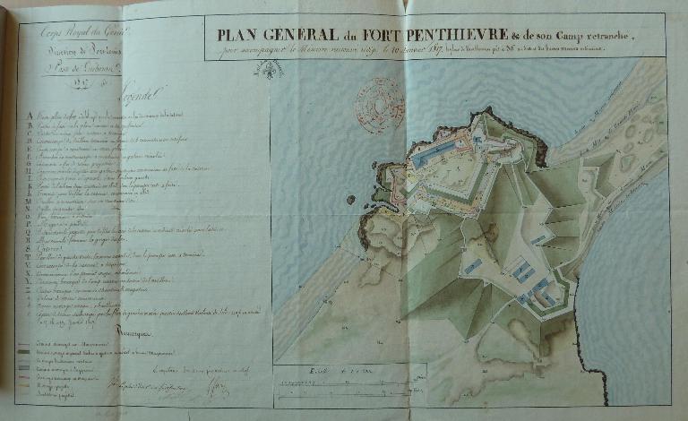 En 1822, un projet fut fait pour modifier les fortifications et construire la caserne défensive. Le Général Haxo fit un second projet du Fort Penthièvre. Enfin, dans ce moment, un nouveau projet est en cours d'exécution. C'est ce projet que représente le dessin ; cependant, quelques modifications seront apportées aux chemins couverts du Fort. Quant au camp et à la lunette (14), on ne s'en est pas encore occupé, bien qu'ils demandent certaines réparations et modifications.