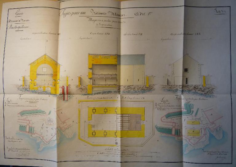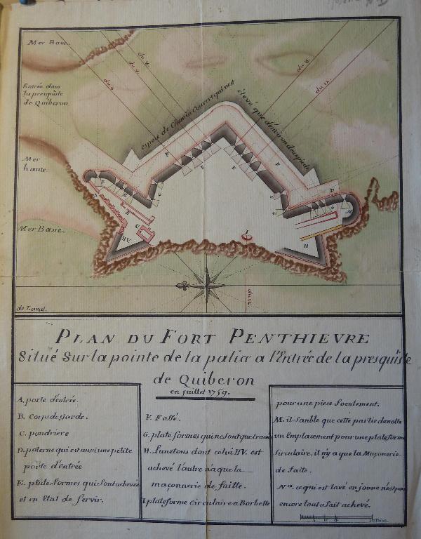 (Service historique de la Défense, département Armée de Terre, Vincennes. Archives de l'Artillerie ; Sous-série 3 W, Opérations militaires : 3 W 58, Documents particuliers à la Direction de Brest. Direction d'Artillerie de Nantes. Fort Penthièvre. Presqu'île de Quiberon. Mémoire, 25 mars 1847)