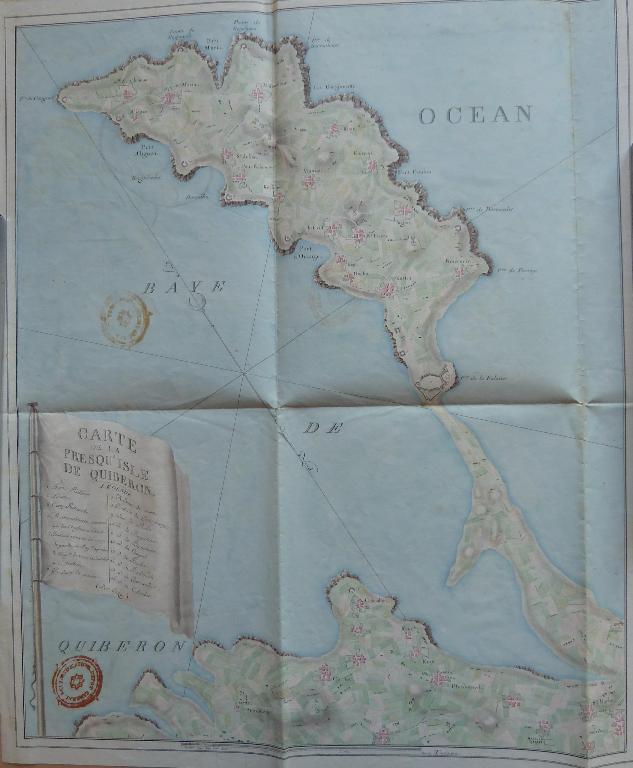 Les renseignements que l'on a été à même de se procurer sur la presqu'île de Quiberon, font connaître, qu'avant 1745, il n'y avait point de batterie sur ses côtes, et que huit y furent projetées pendant cette dernière année. Cette présomption est déduite : 1°, d'un plan de la presqu'île, non signé, mais sur lequel est écrit de la main de Mr Frézier, Directeur général des Fortifications de la Bretagne : Quiberon réduit sur le Neptune français, pour indiquer les batteries à faire en 1745. 2°, d'un autre plan, non signé, mais sur lequel il est écrit de la même main : Plan de la presqu'île de Quiberon, pour montrer la position des fortifications qu'on y juge nécessaire contre les descentes et les établissements des ennemis. C'est donc à l'époque de 1745 que nous porterons l'importance de cette presqu'île, relativement aux événements militaires dans lesquels elle a joué un rôle.