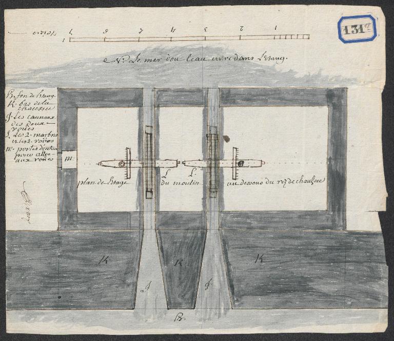 AD56 1Fi 131/18, Plan du sous-sol du moulin du Lindin, datation estimée fin 18e
