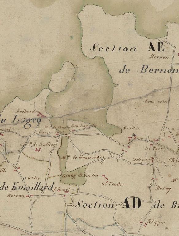 AD56 1Fi 131/15, Plan de l'étang du moulin du Lindin, datation estimée fin 18e