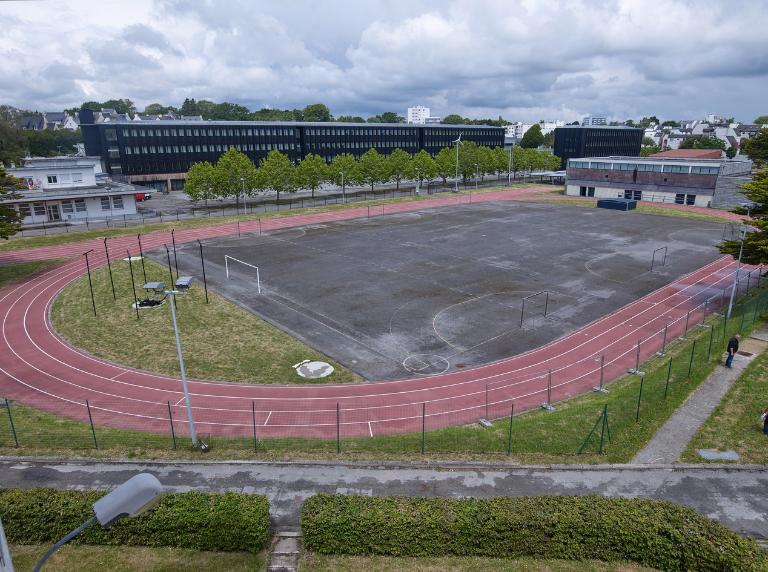 Le plan masse s'organise autour d'un vaste espace non bâti composé de la cour et de la piste d'athlétisme.