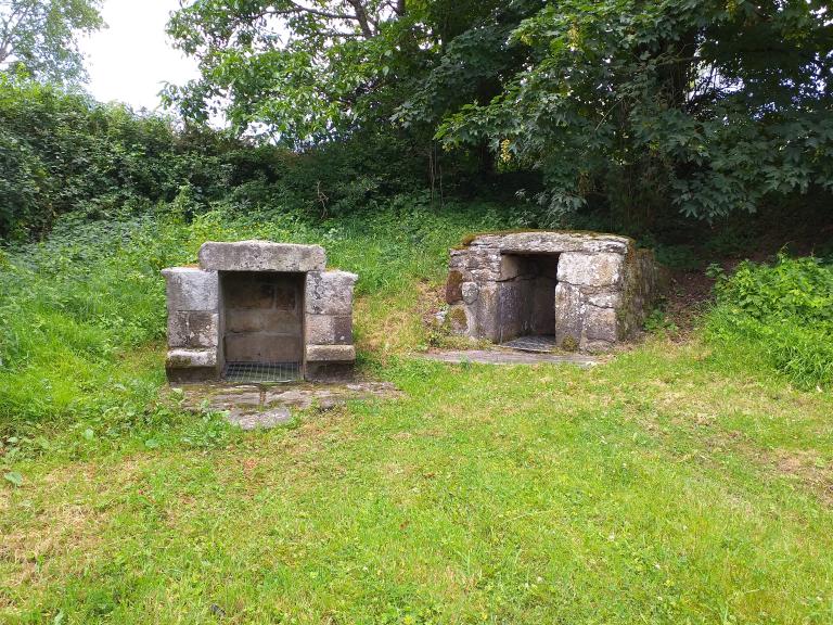 Par ailleurs, quelques fontaines sont enterrées. Il s'agit de la fontaine Saint Léonard à Noyalo, située à proximité de la chapelle Saint-Léonard, et équipée d'un escalier d'accès à l'eau taillé dans la roche; la fontaines de Kerassel à Sarzeau et celle de Saint Goustan à Theix, situées en deçà du niveau de voierie ; la fontaine du Rohello à Baden ou celle du Vicaire à Plougoumelen construites dans la pente du sol, ou encore la fontaine de Kergouët à Crac'h qui a la particularité d'être nichée dans la paroi rocheuse. Difficilement accessible par voie terrestre, son linteau monolithe est visible depuis la rivière de Crac'h.