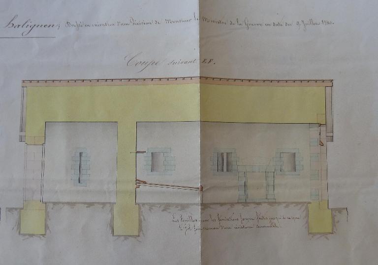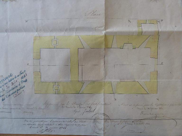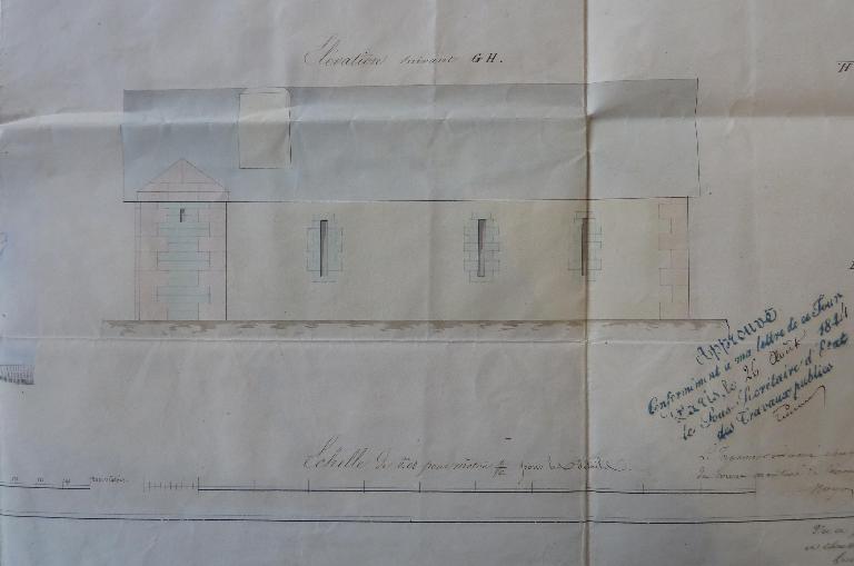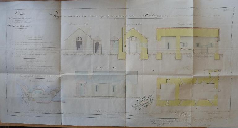 Archives départementales du Morbihan. Série S, Travaux publics et transports ; sous-série 4 S, mer, ports, transport maritime : 4 S 1290, Port Haliguen, 1770-1939. Département du Morbihan, Travaux maritimes/Direction du Génie de Nantes, Place de Quiberon, procès-verbal de réception du corps de garde de Port Haliguen, 8 juillet 1845.